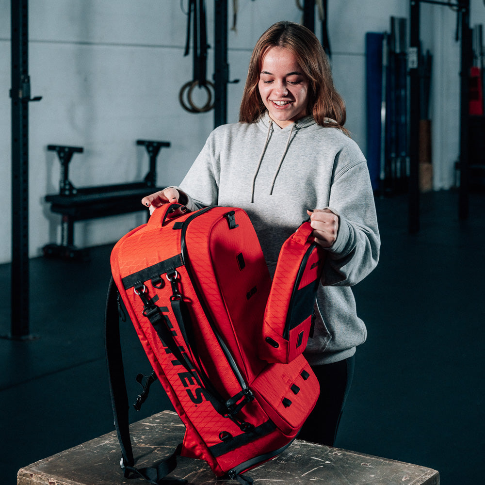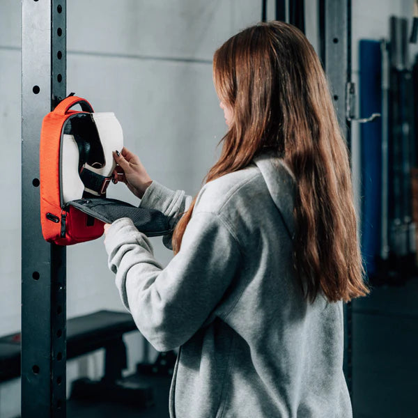 La WODbag que mantiene tus elementos esenciales de entrenamiento organizados y listos en el soporte de la mochila o para usarlo de manera individual como accesorio.